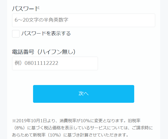 次へ」押して進むと携帯電話番号で