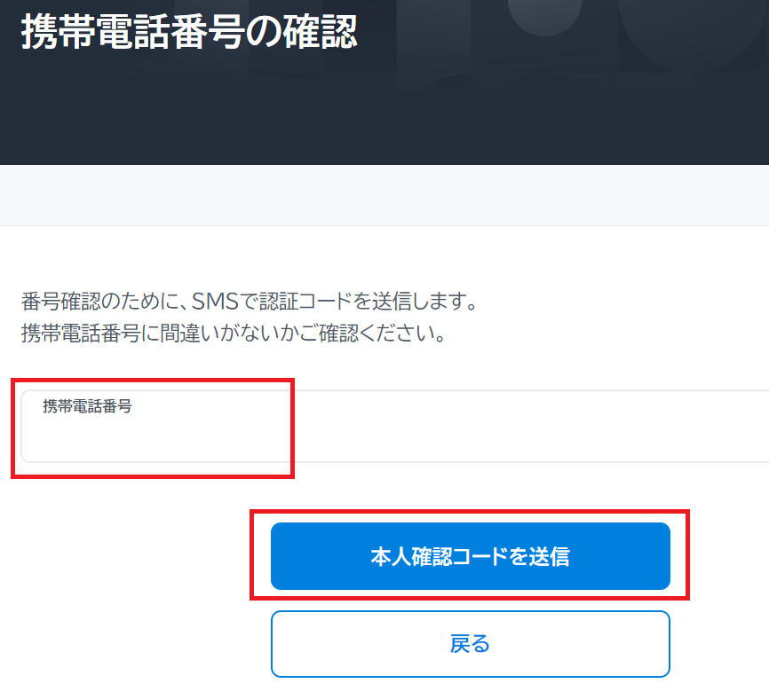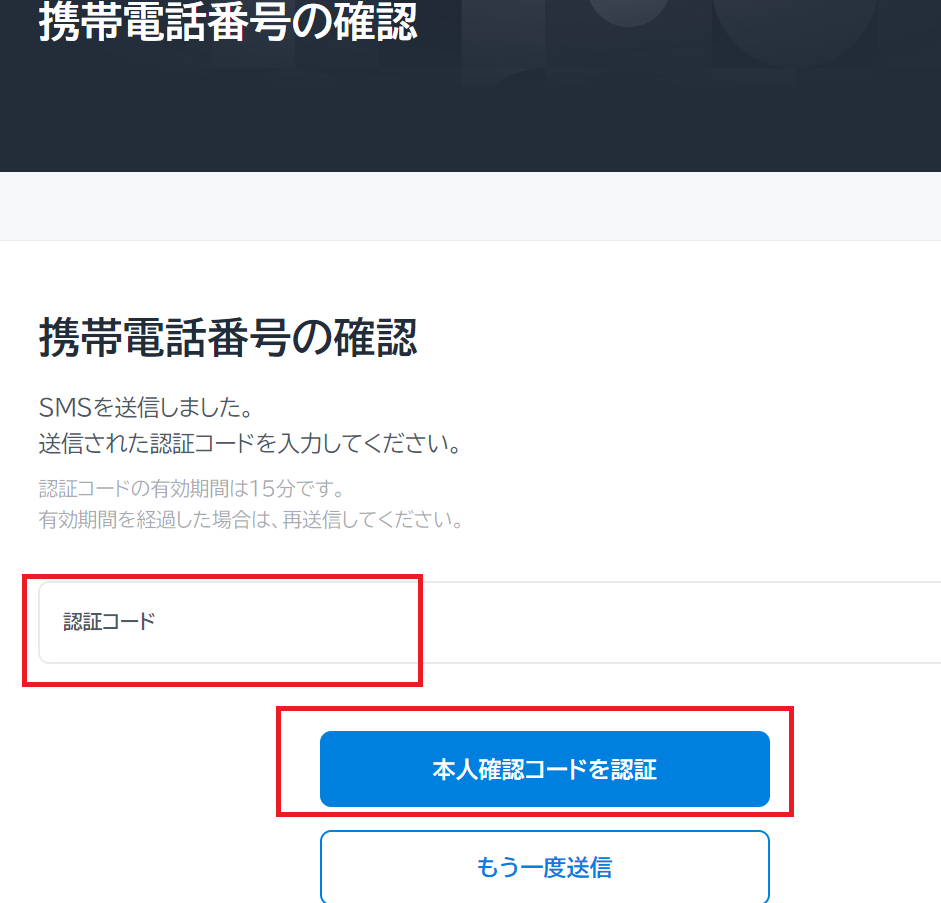 本人確認コードを送信」を