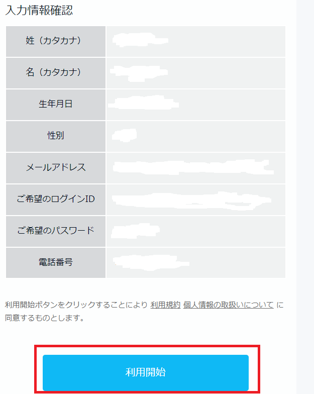 利用開始」を押しましょう。
