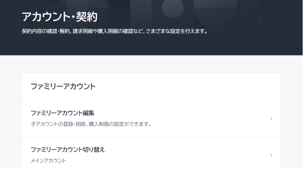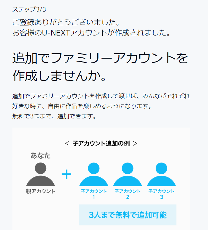 登録完了後、ファミリーアカウントを