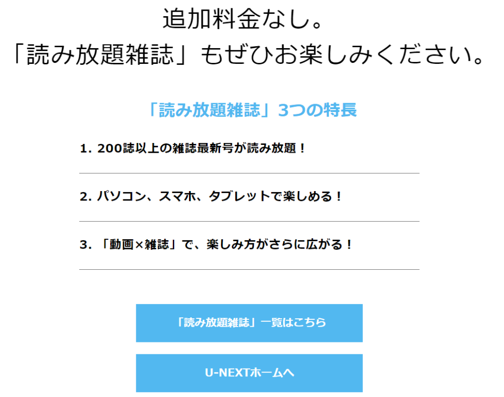 動画だけでなく雑誌も読み放題という